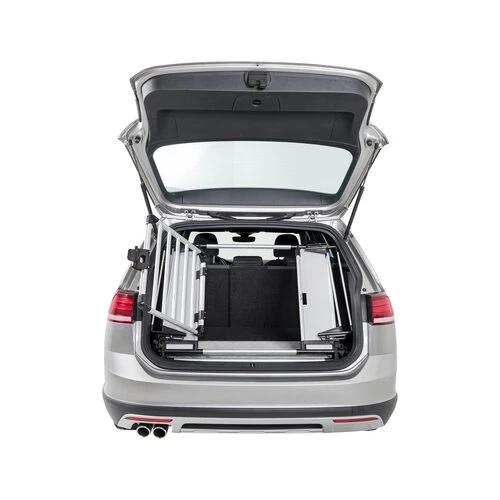 Mit diesem Heckgitter kann der gesamte Kofferraum als Liegefläche von Ihrem Hund genutzt werden. Die Bodenplatte ist mit Klettfüßen ausgestattet, die das gesamte Gitter fest an seinem Platz halten. Die rutschfeste Liegematte ist maschinenwaschbar bis 30 Grad Celsius. Das Trixie Heckgitter besteht aus den Materialien Aluminium, Hartfaserplatte und Kunststoff und wird mit vier Befestigungshaken geliefert. Die Tür hat auch einen Schlitz für ein Vorhängeschloss, das Schloss selbst ist nicht enthalten. Die Breite ist einstellbar von 94 bis 114 Zentimetern, die Höhe beträgt 69 Zentimeter und die Tiefe 53 Zentimeter. Schauen Sie sich natürlich die Maße Ihres Kofferraums genau an und prüfen Sie, ob er passt. Das Gitter ist für die meisten Autos geeignet.